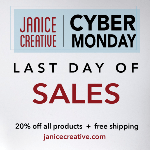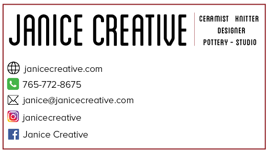 In 2020, I created new business cards for Janice Creative. I made three different versions, all featuring a picture of one of Janice Creative’s feature products on the front.